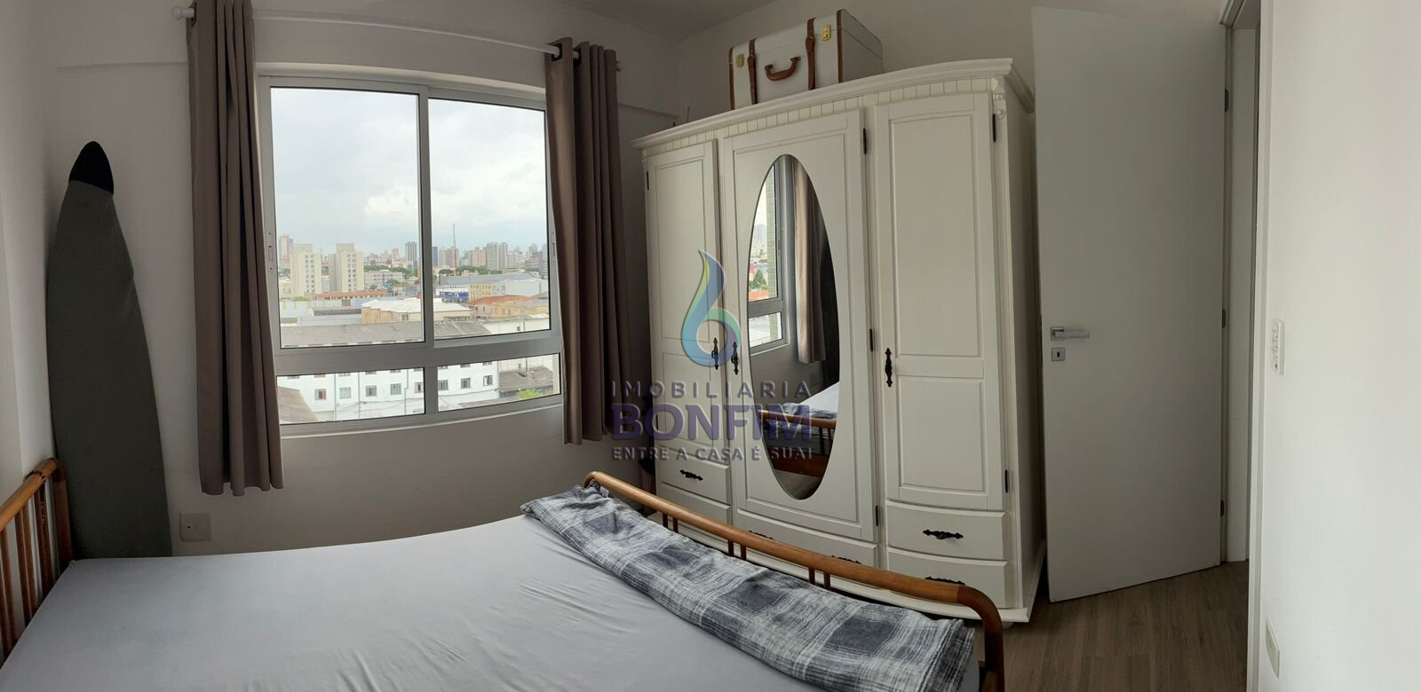 Conforto Privativo: Quarto espaçoso com capacidade para cama Queen e armário.