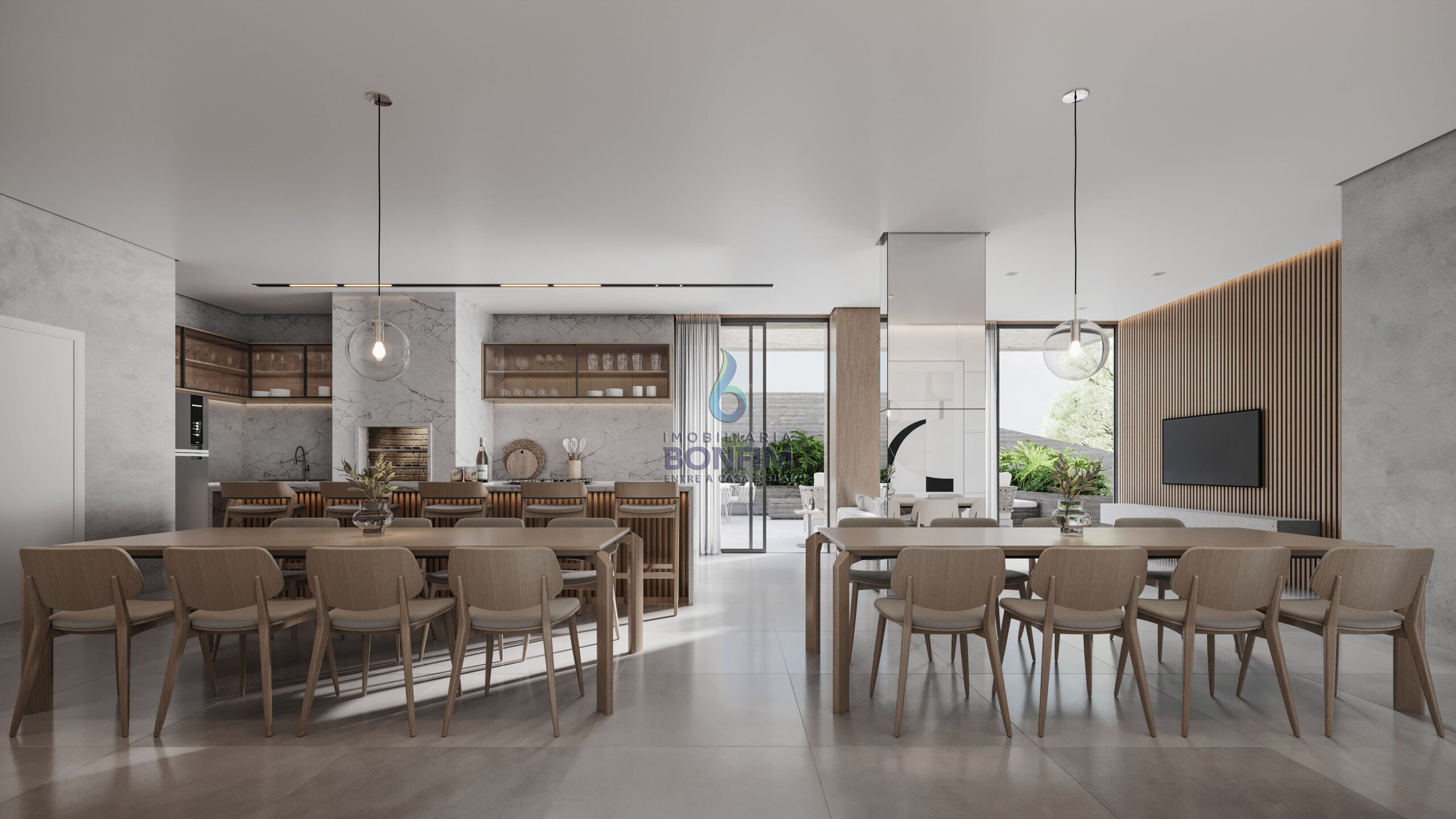 Salão de festas com espaço gourmet;