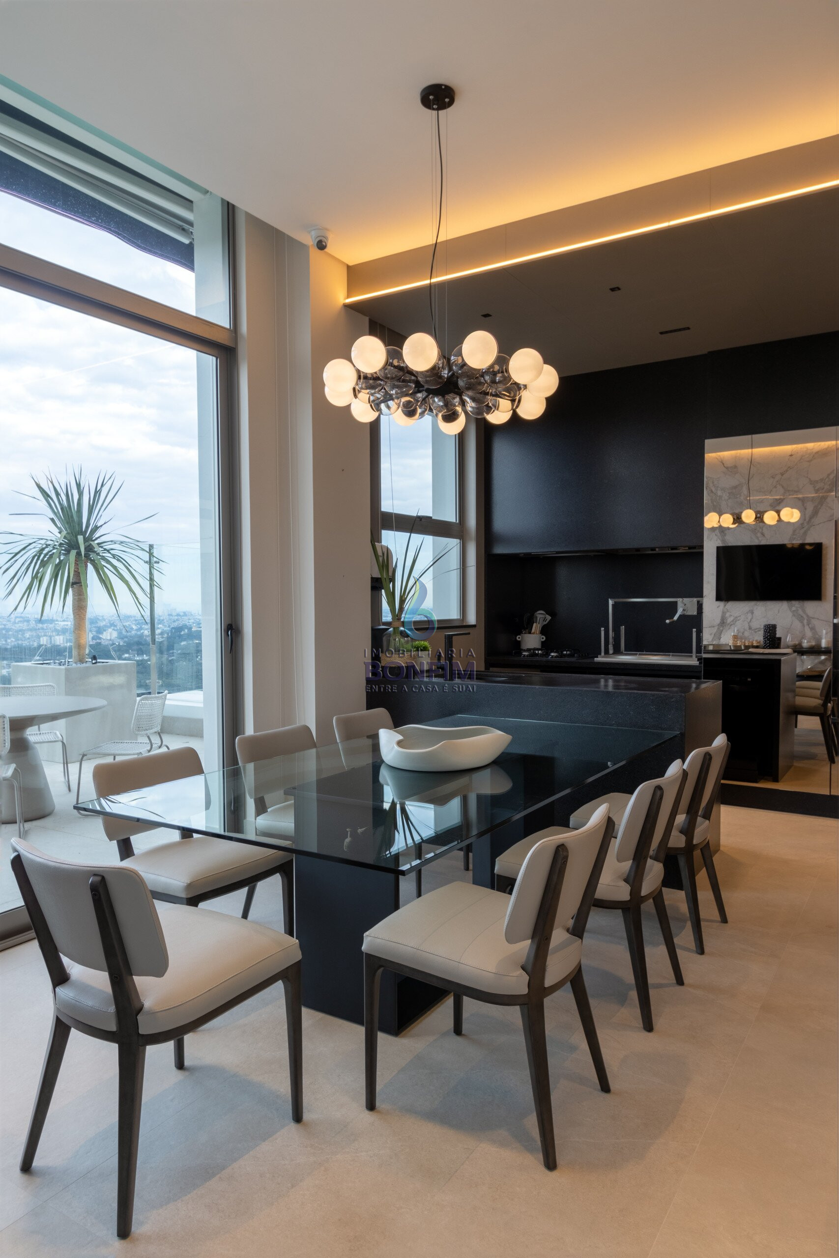 A cozinha gourmet e o terraço com churrasqueira tornam o imóvel ideal para encontros familiares e sociais, proporcionando integração e sofisticação.