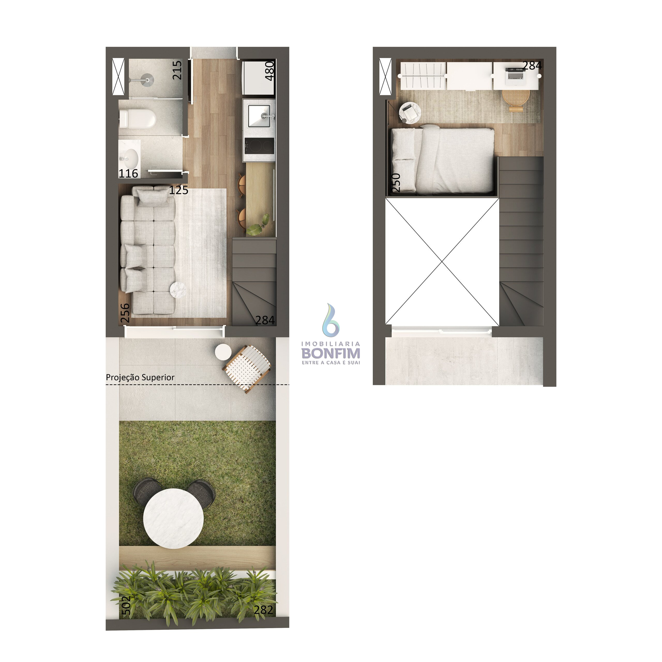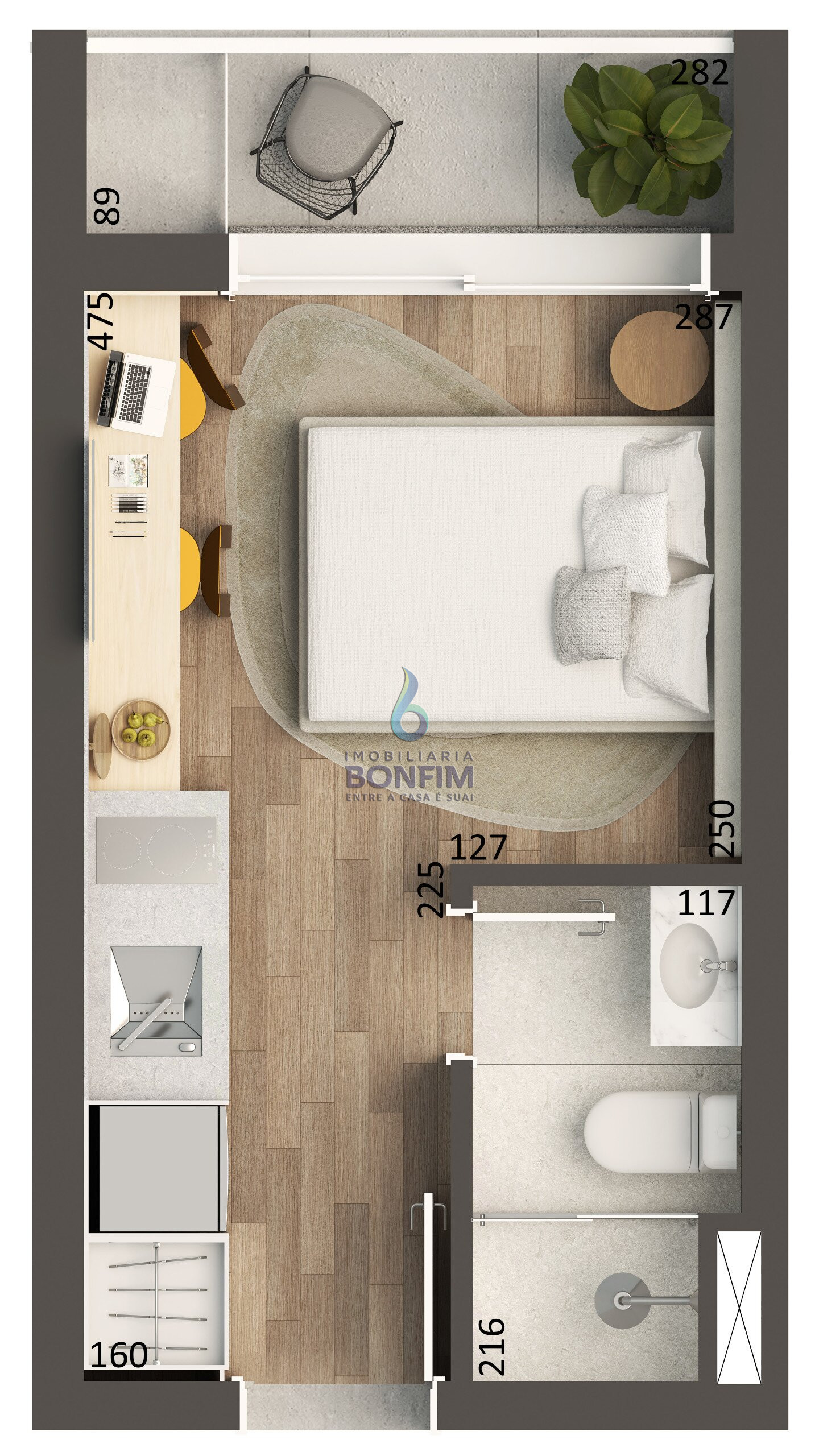 O Studio 01 foi planejado para oferecer praticidade e conforto, com layout inteligente que otimiza os espaços e permite diferentes configurações de uso, ideal tanto para moradia quanto para investimento. A unidade conta com excelente iluminação natural, acabamentos de padrão atual e integração harmoniosa entre os ambientes.