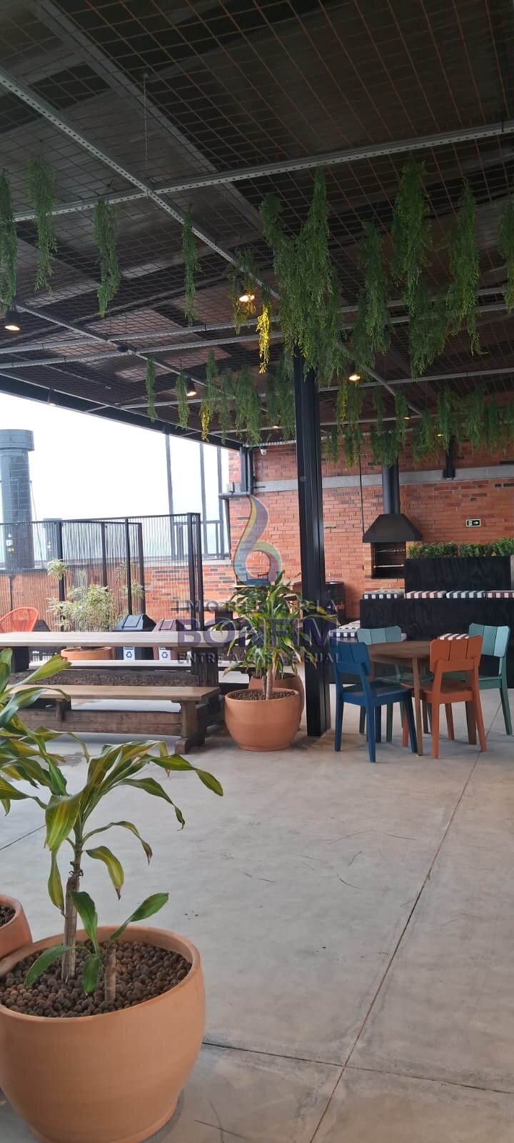 Churrasqueiras com mesas, cadeiras e áreas para relaxar;