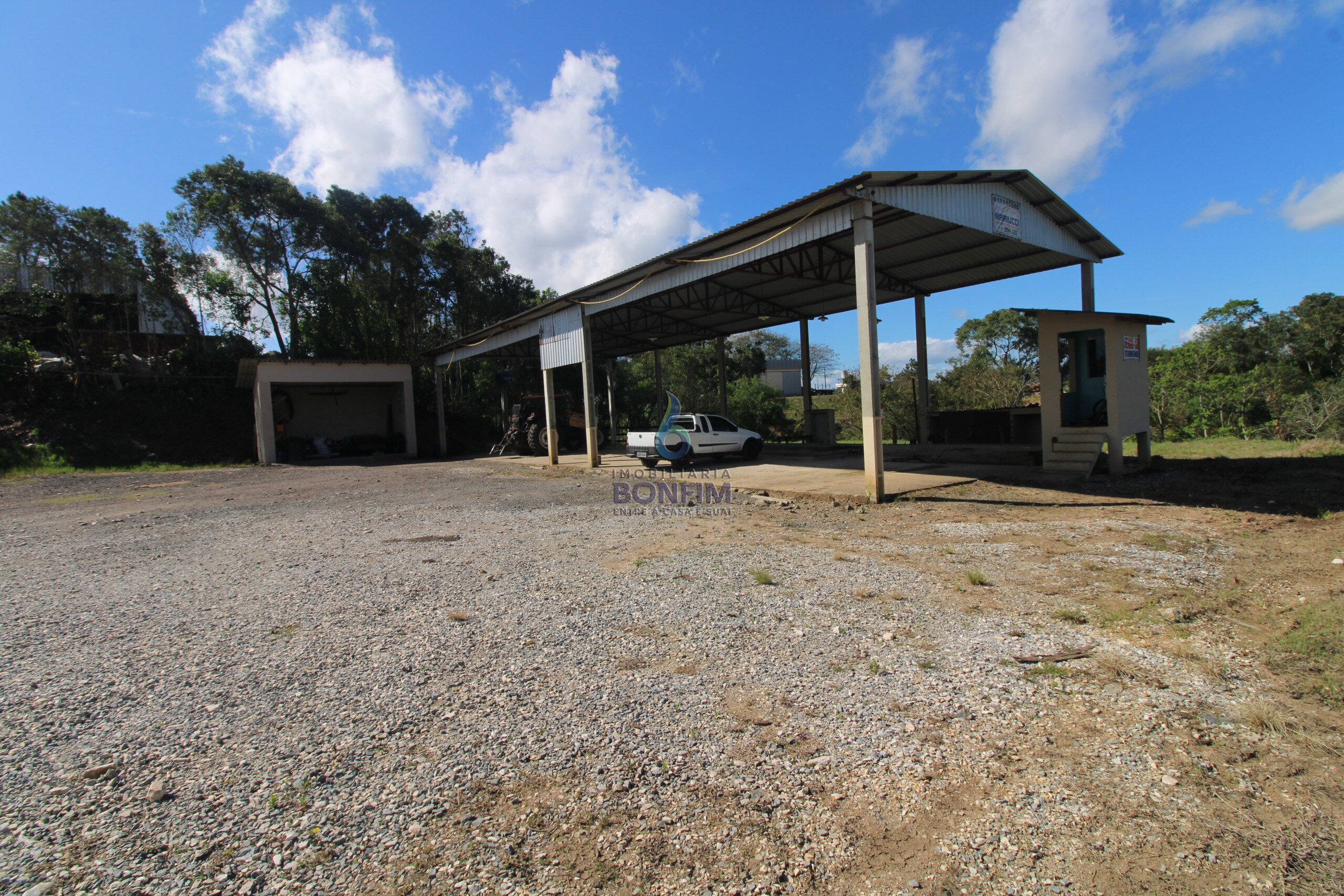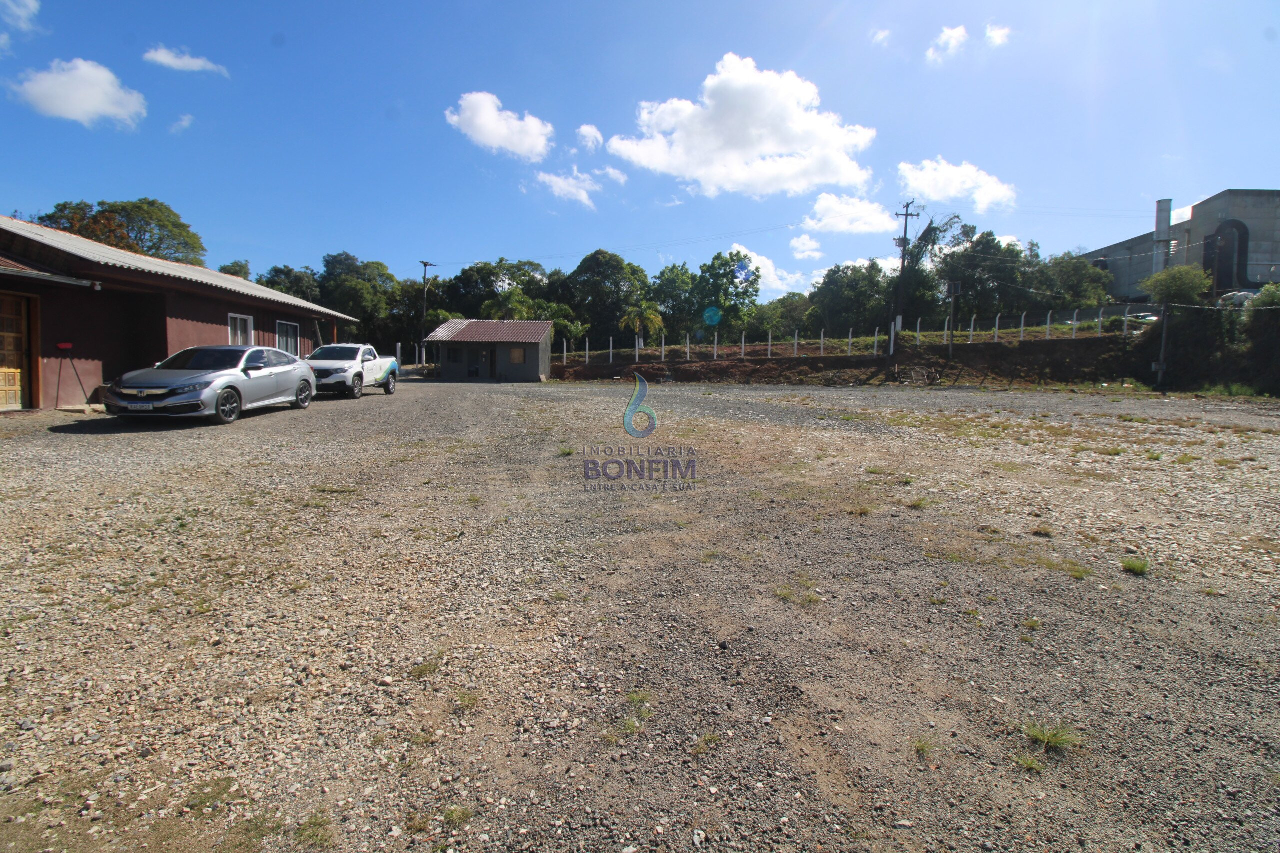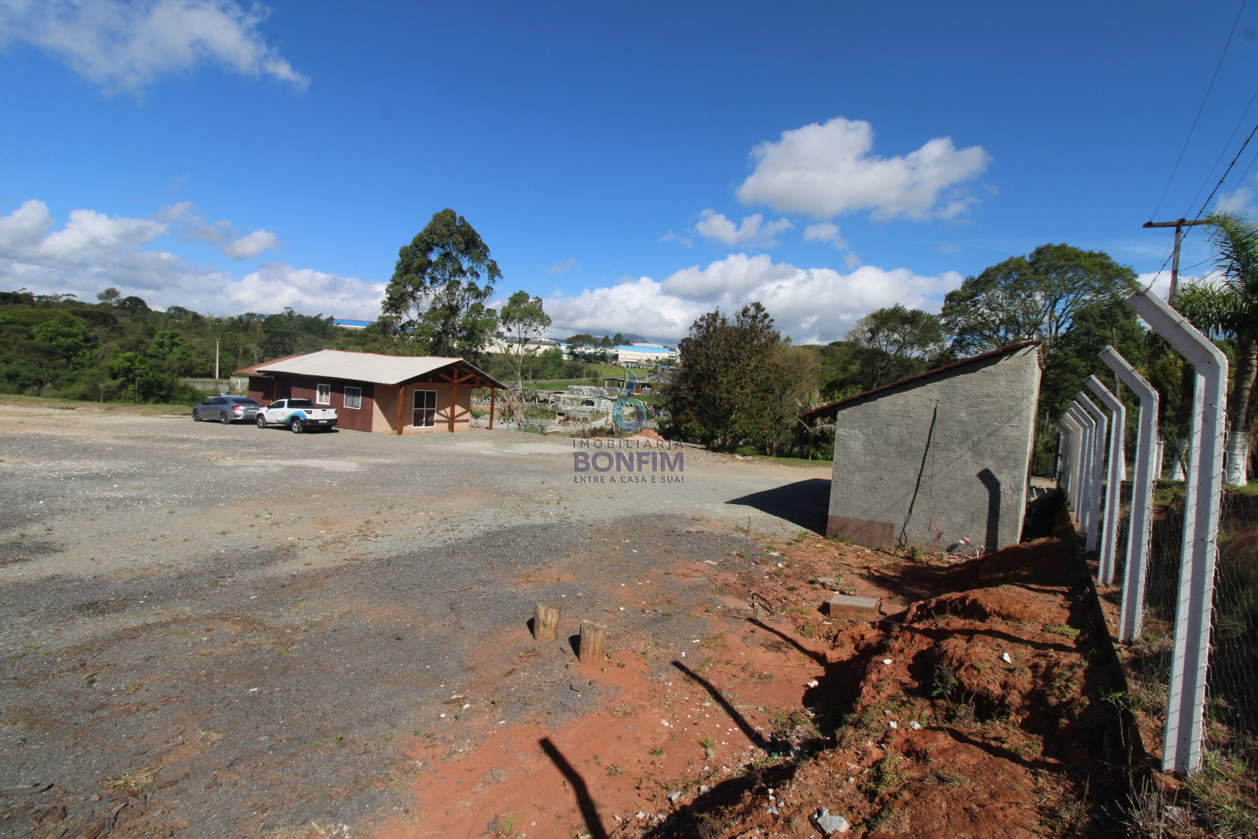 O terreno conta com uma excelente casa para moradia e um barracão já construído.
