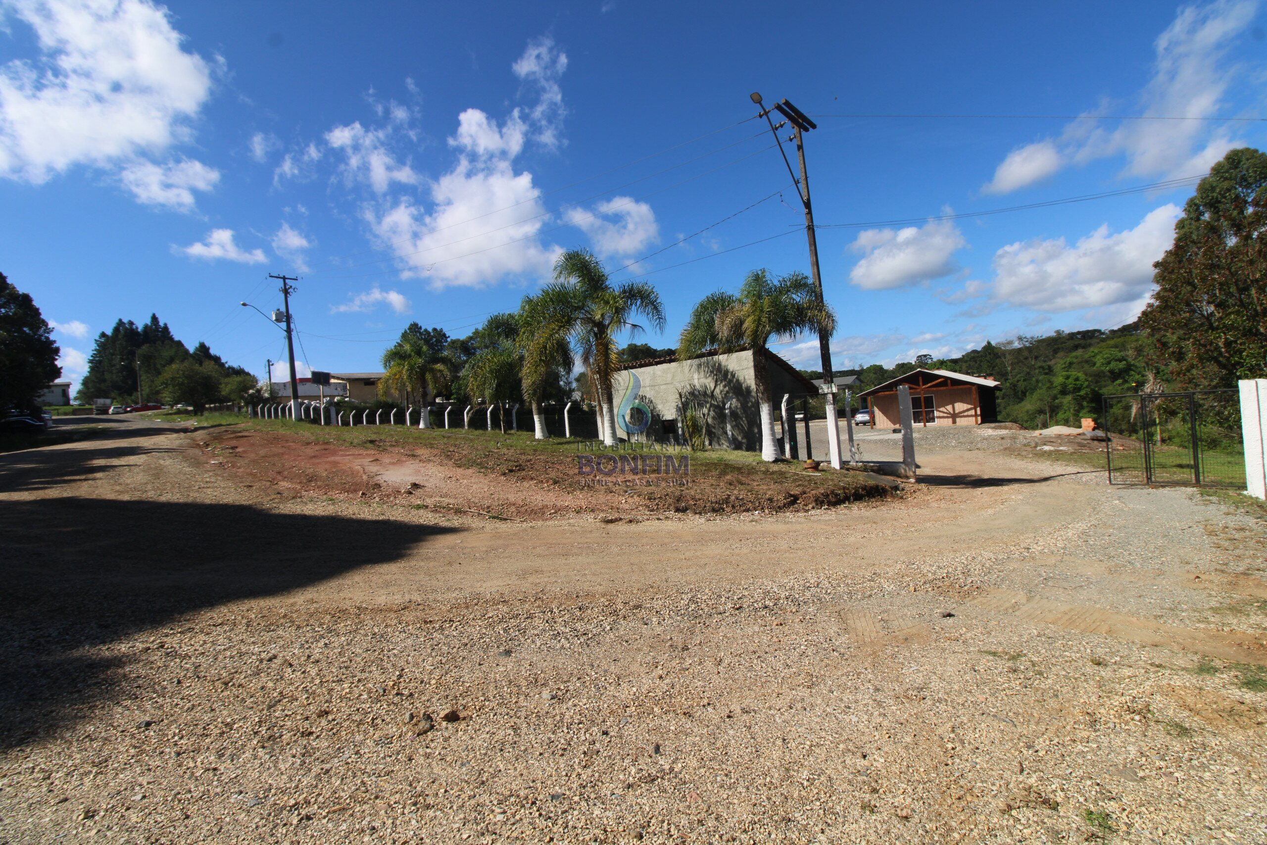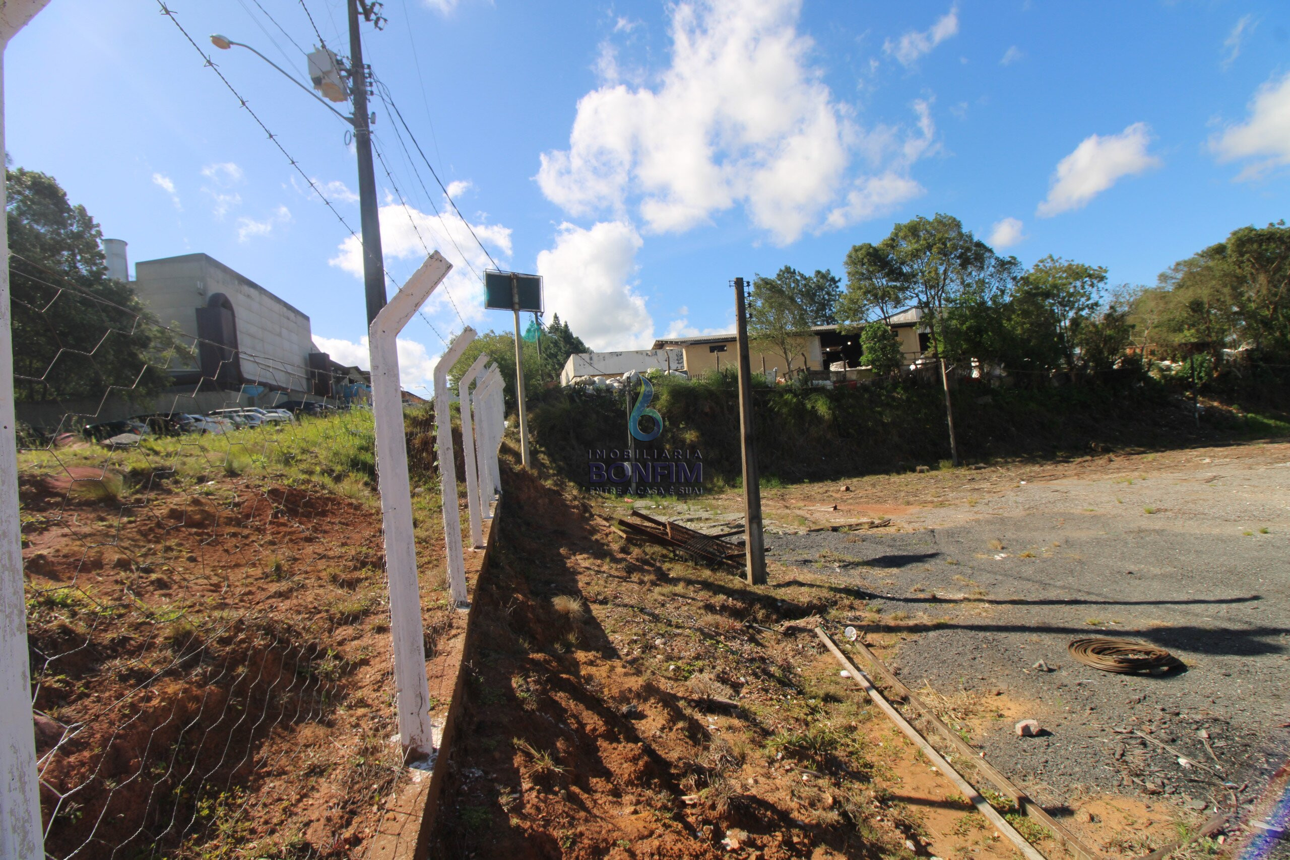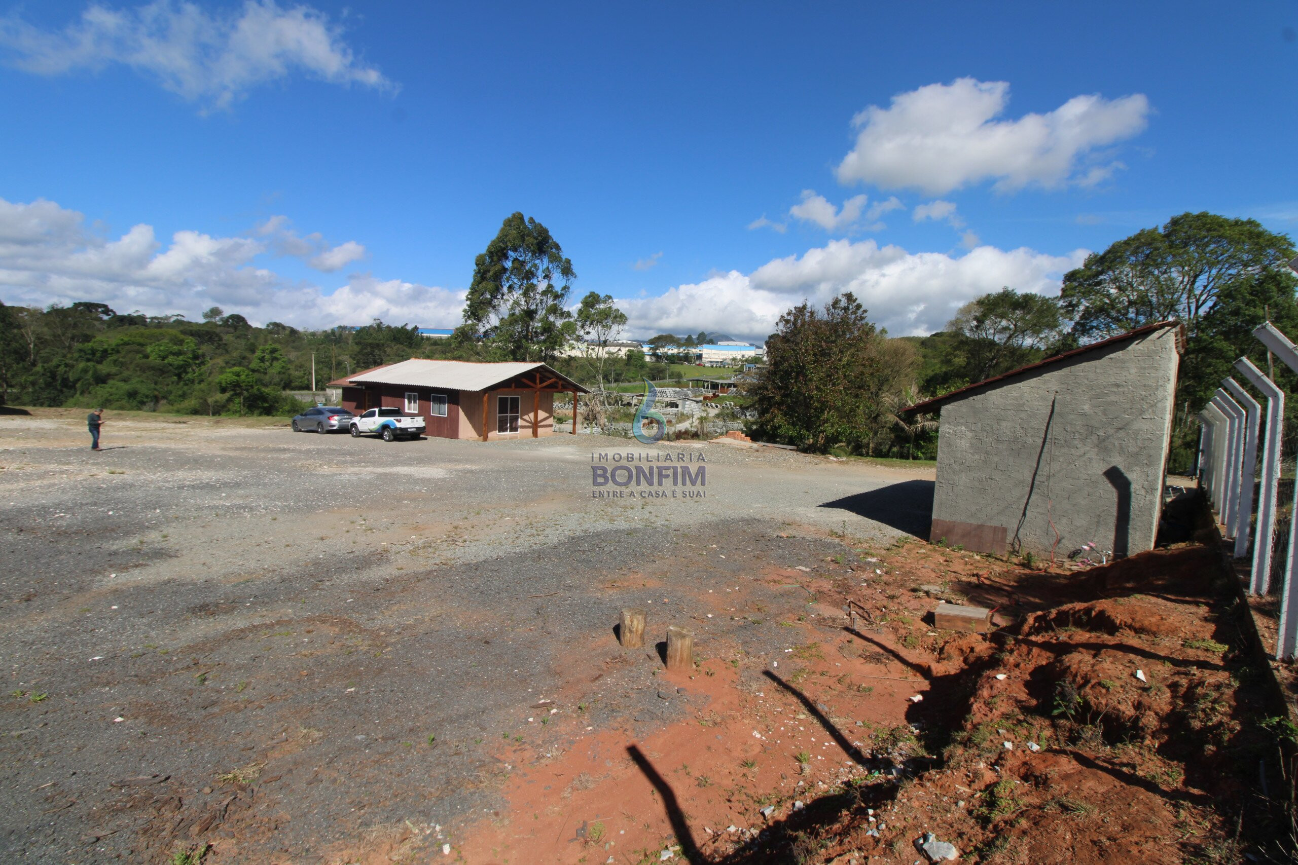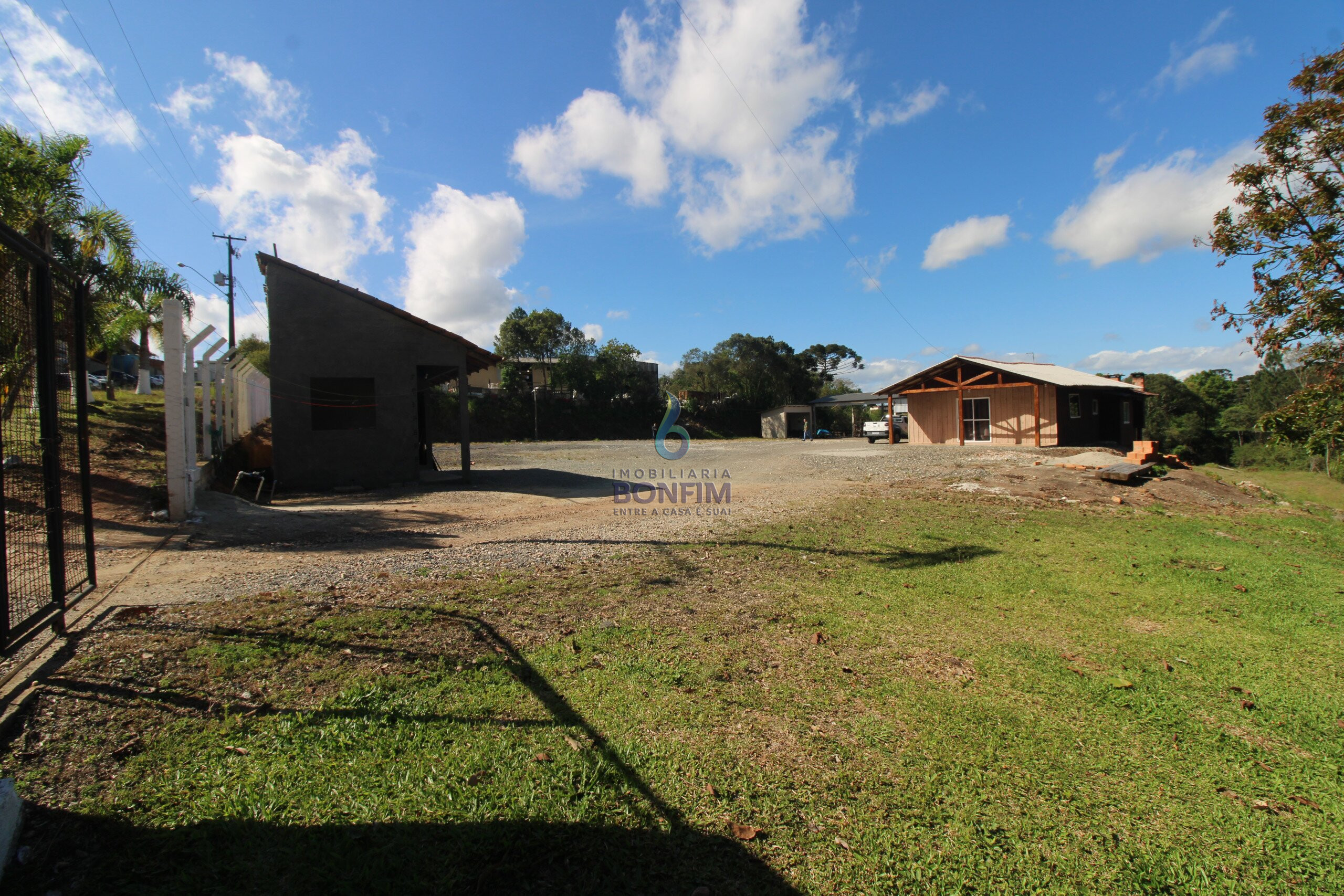 O terreno conta com uma excelente casa para moradia e um barracão já construído.