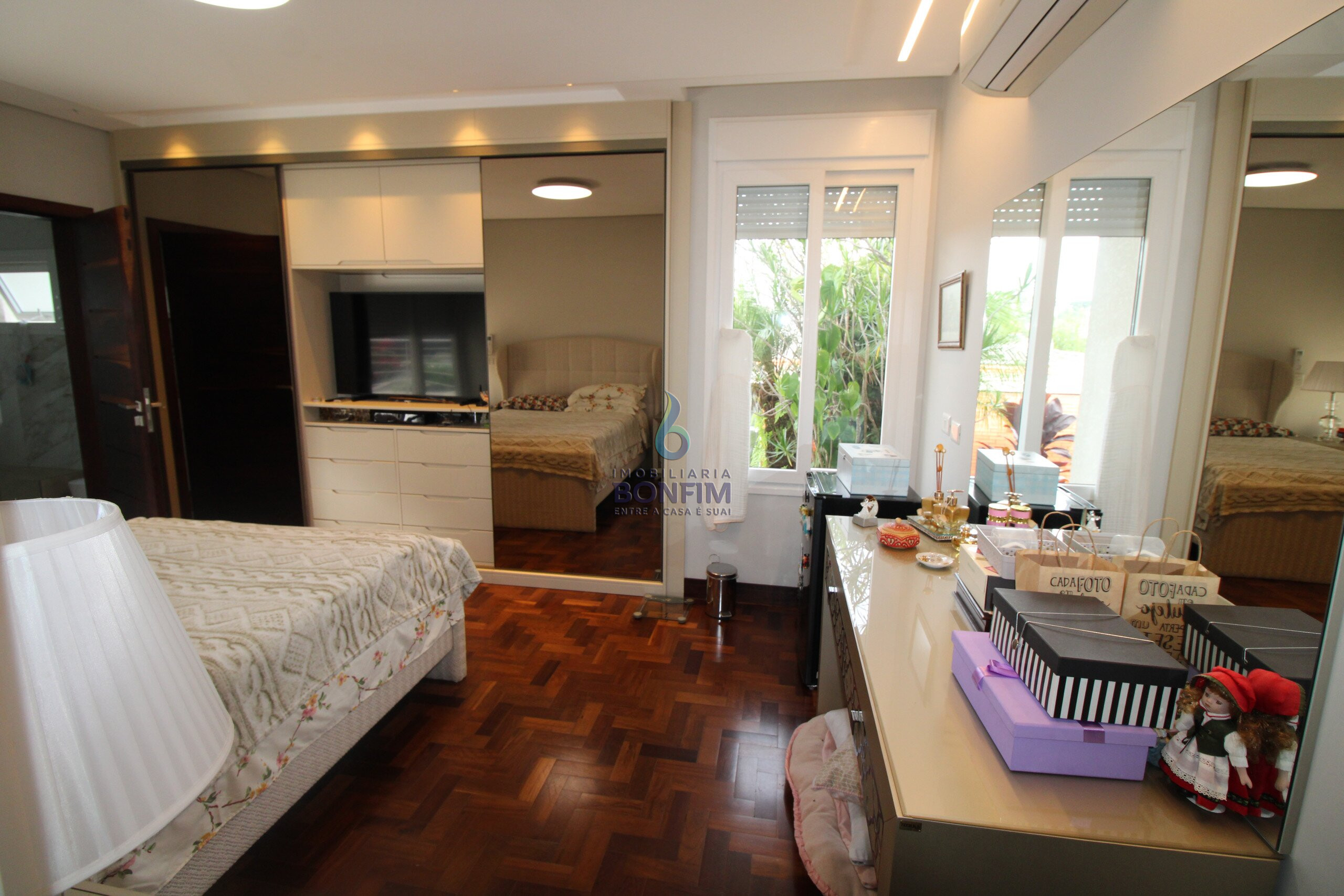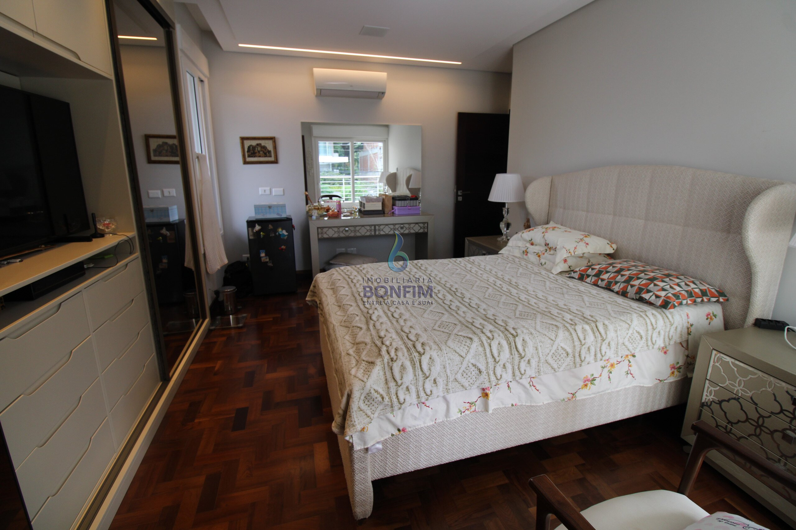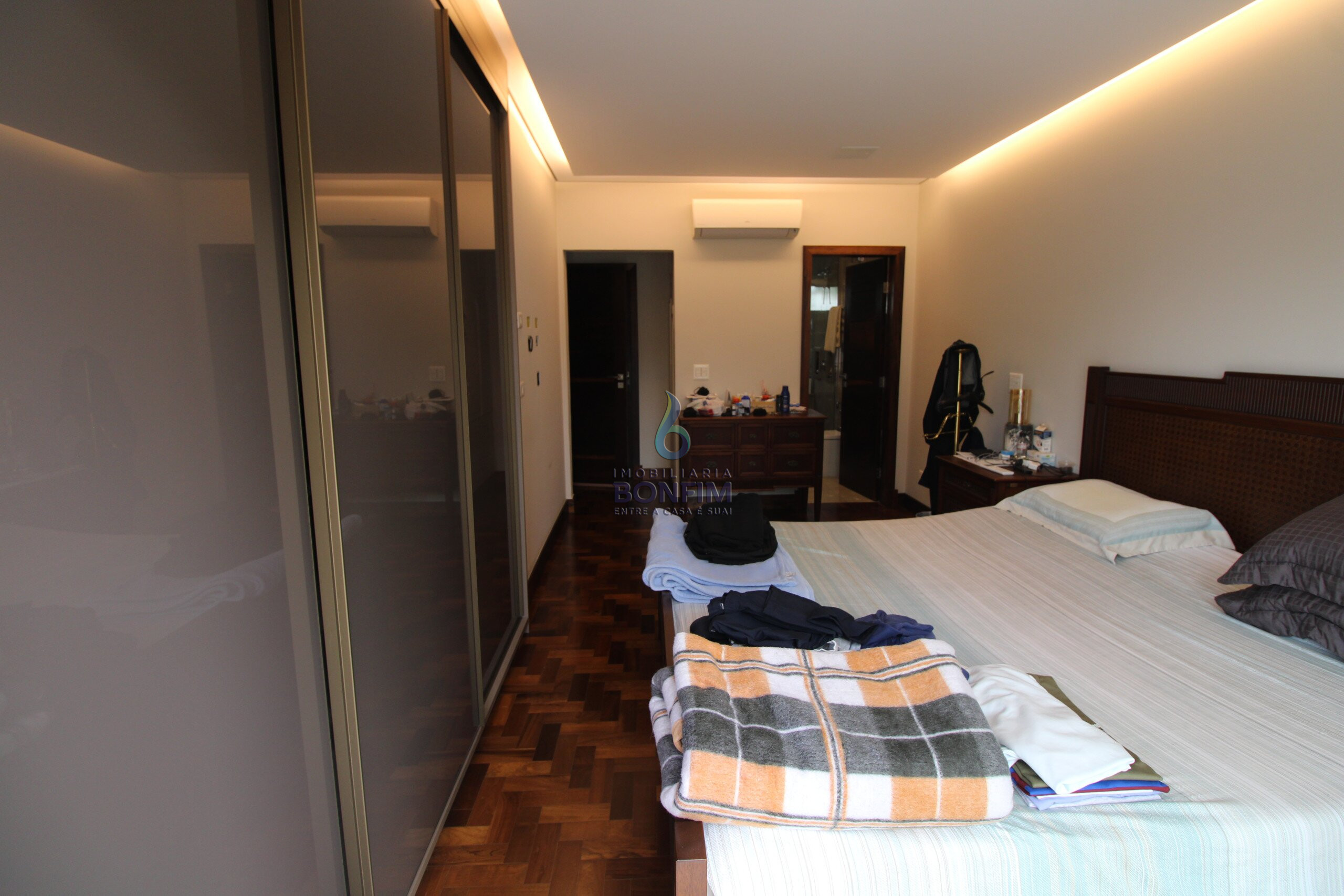 A residencia dispõe de 4 quartos, 4 banheiros e 2 suítes com Ar condicionado em todos os dormitórios.