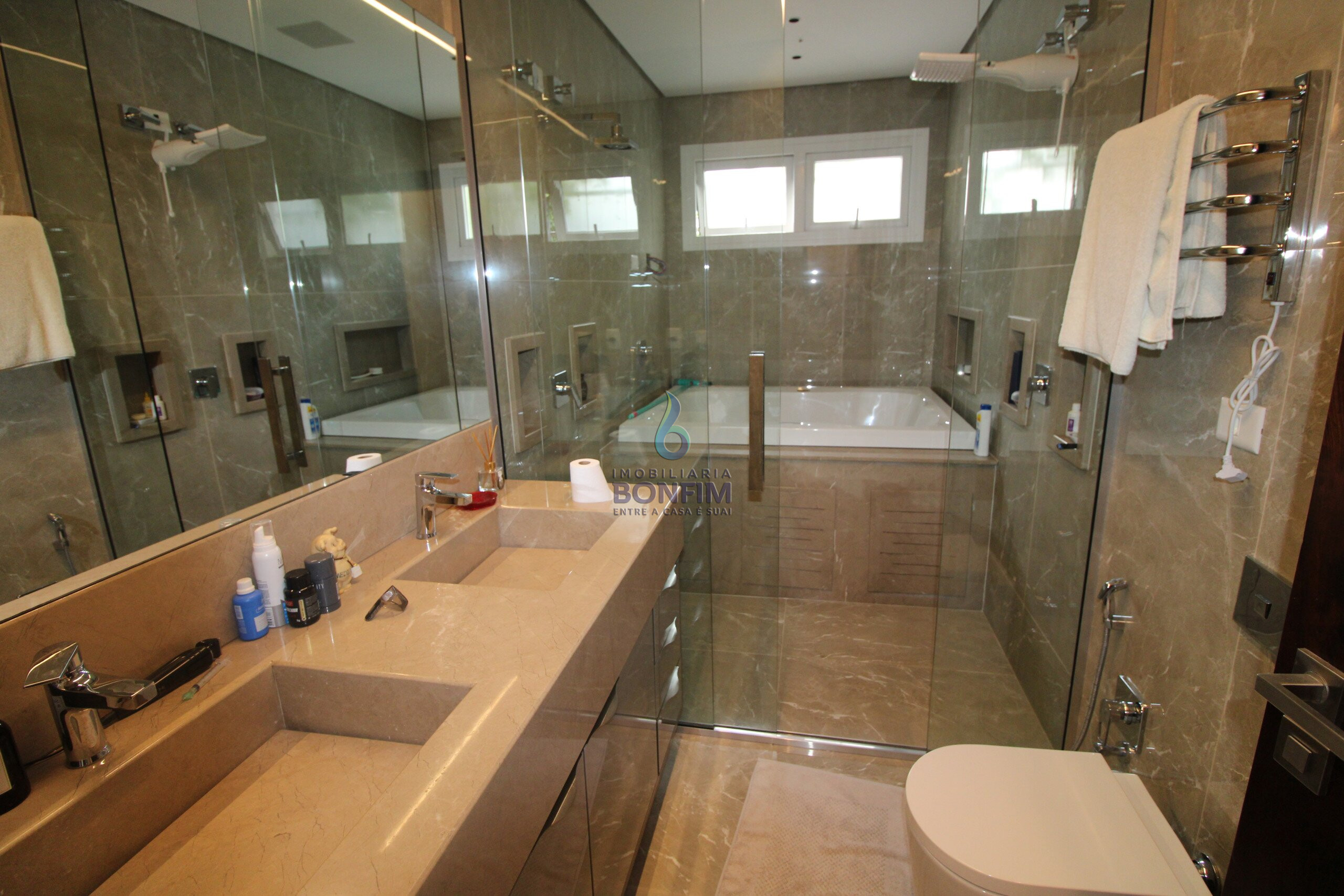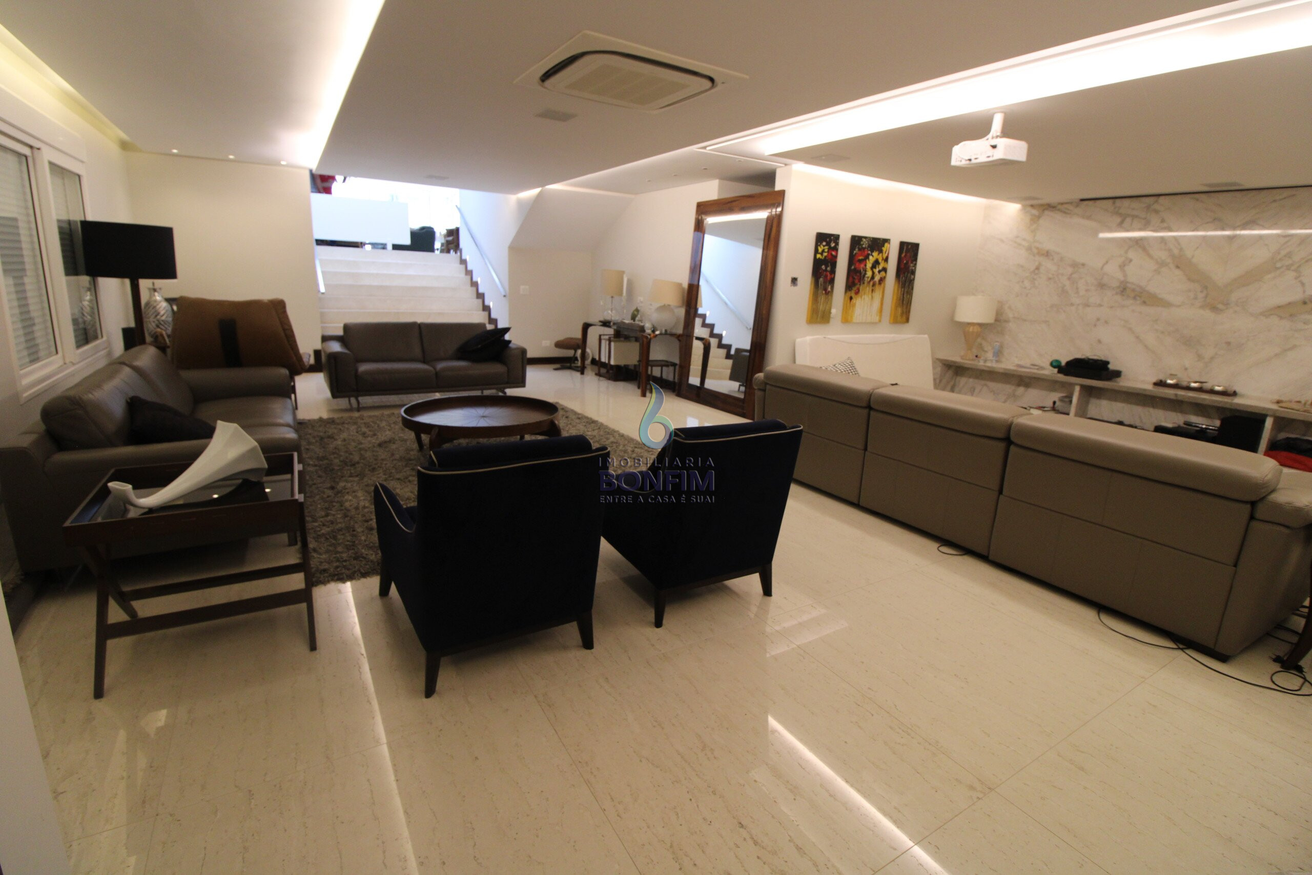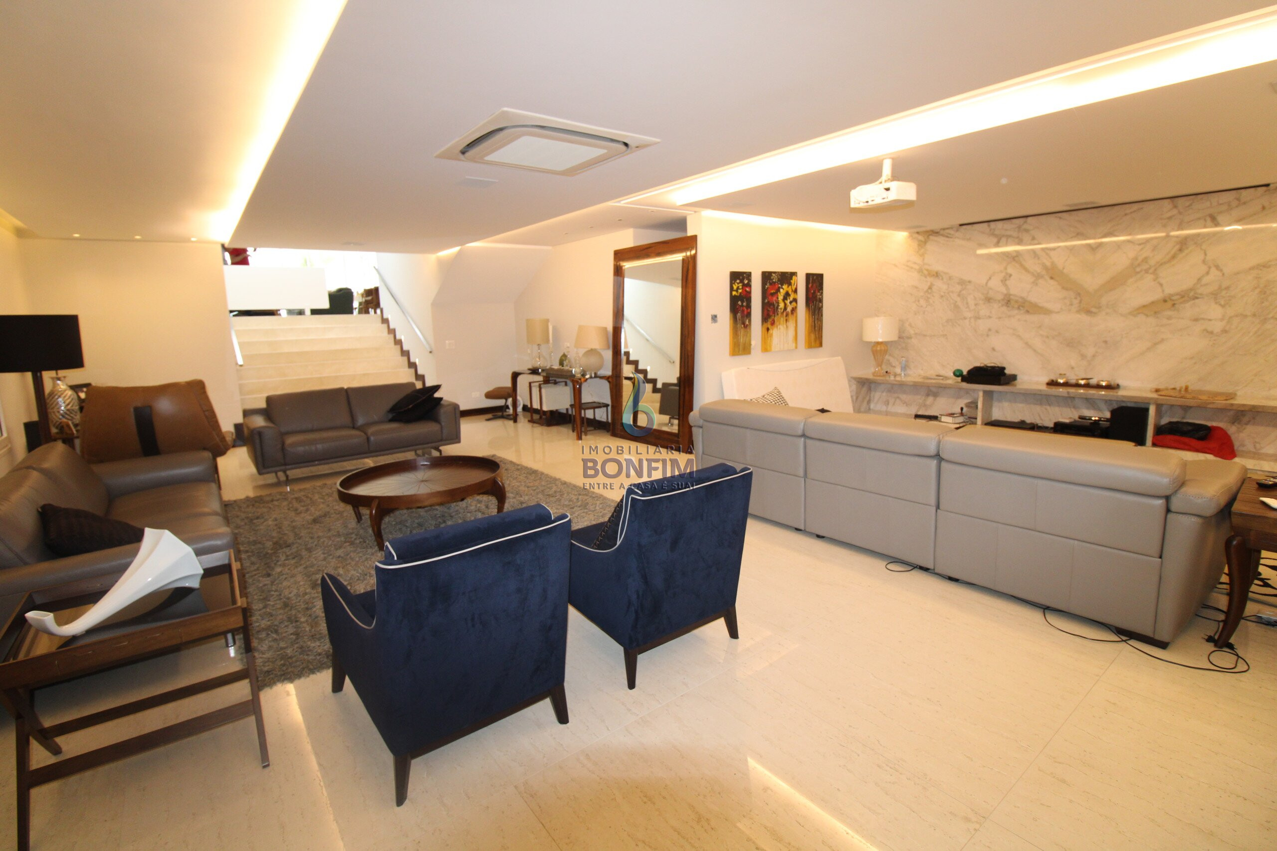 A residencia dispõe de 4 quartos, 4 banheiros e 2 suítes com Ar condicionado em todos os dormitórios.